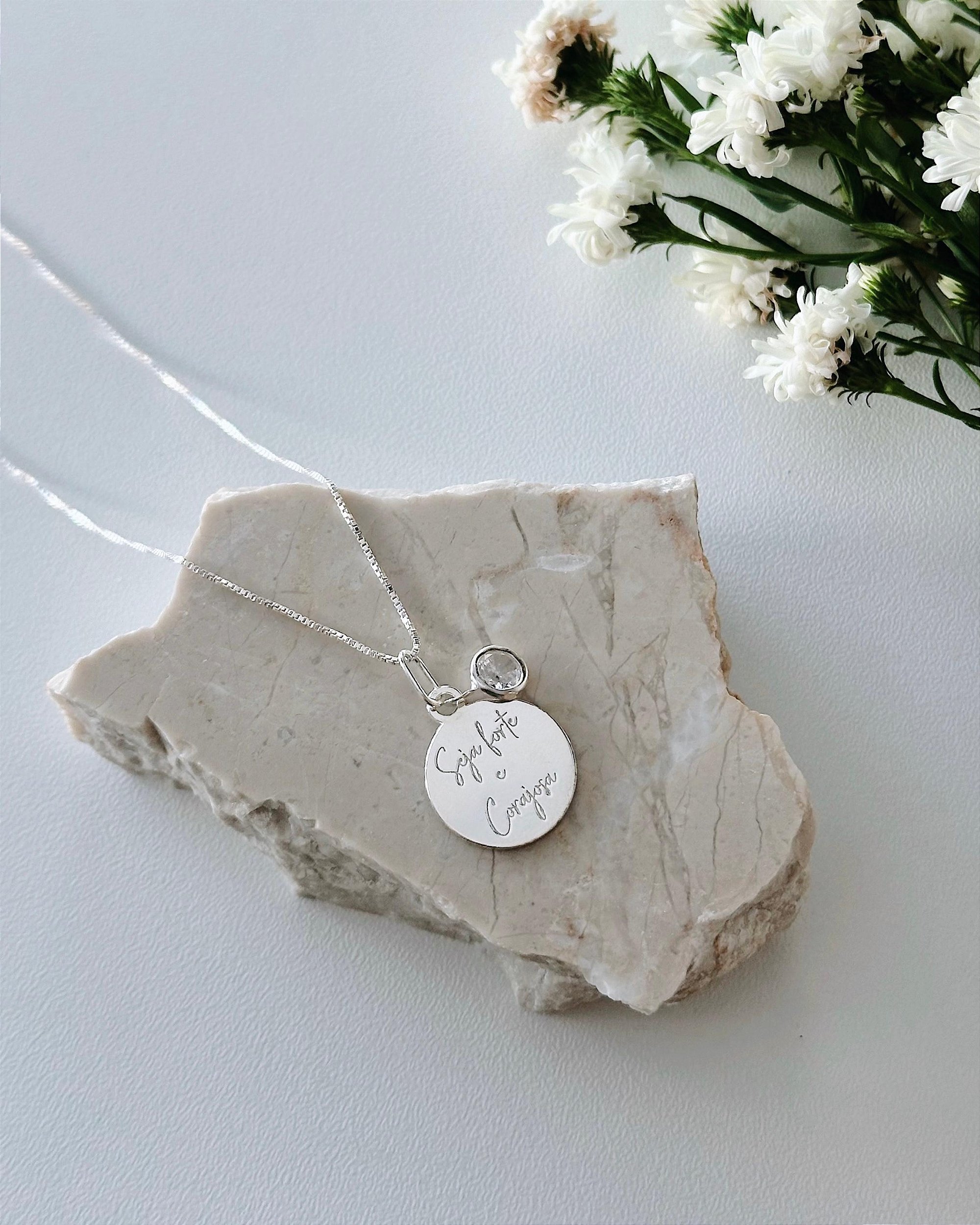 O Colar Seja Forte e Corajosa em prata 925 é uma peça delicada e inspiradora. Com um design moderno e uma mensagem poderosa, é perfeito para presentear ou usar como um lembrete diário de força e coragem.
